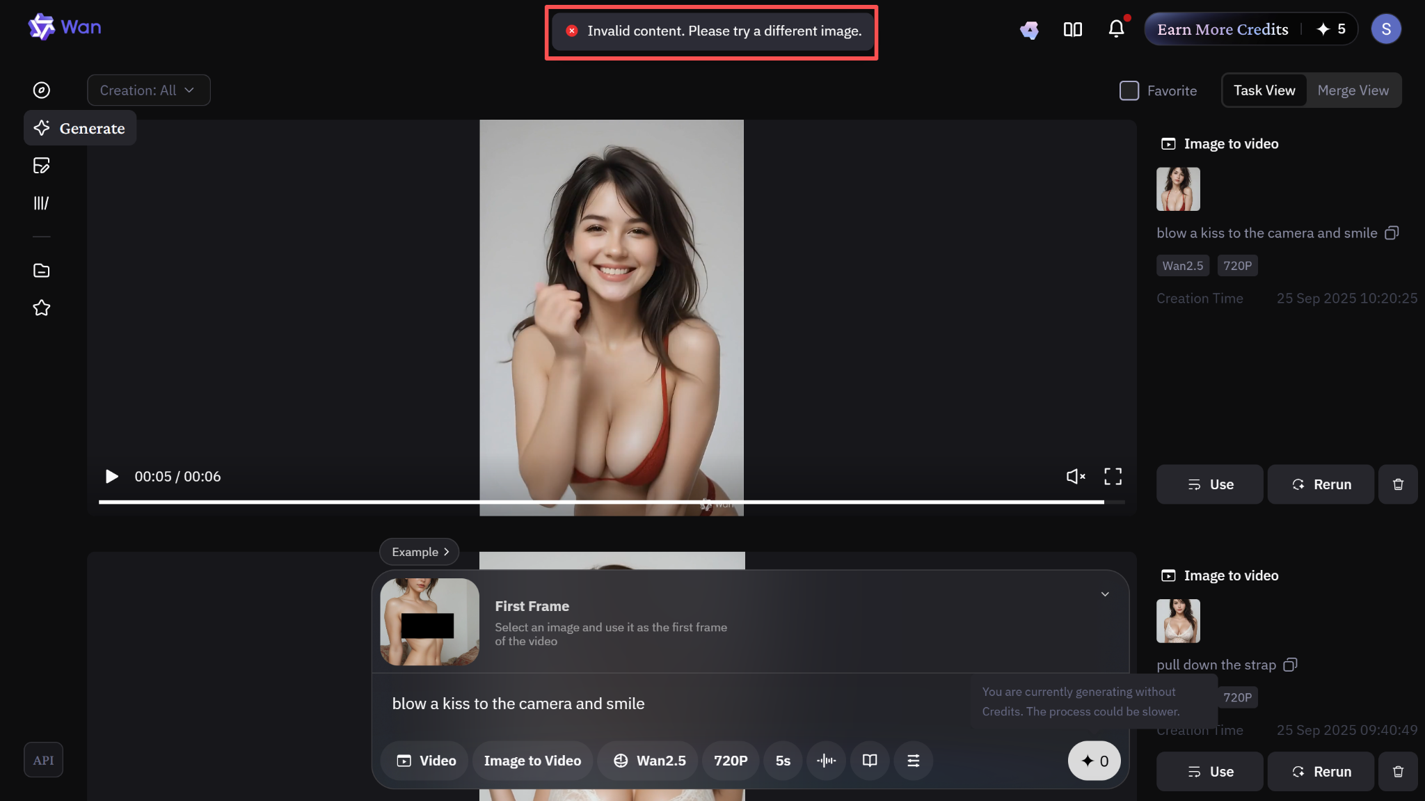 But When I uploaded it to the Wan 2.5 model, it didn’t bypass the content filter of Wan 2.5 as well.