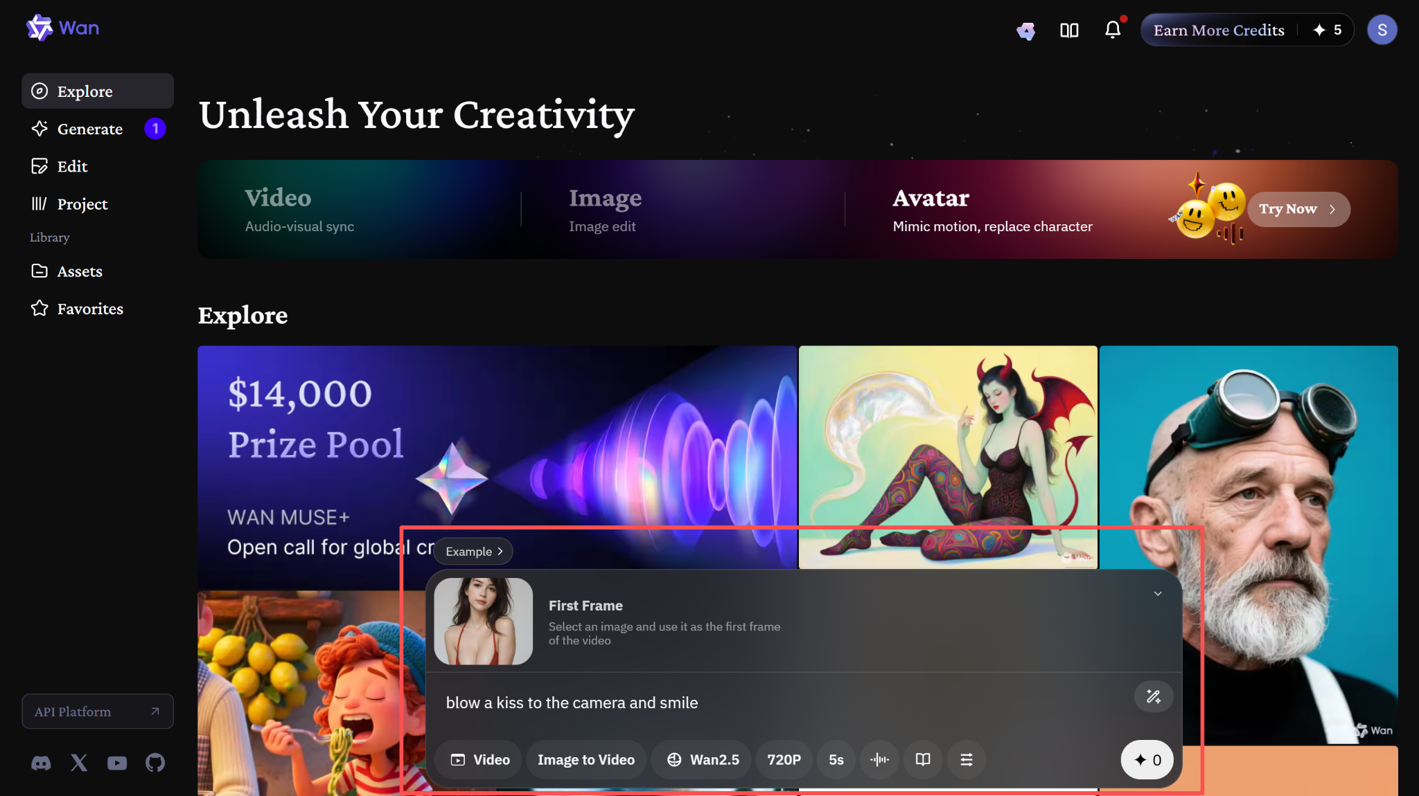Then, in the interactive panel below, select “Image to Video” and choose the Wan 2.5 model.