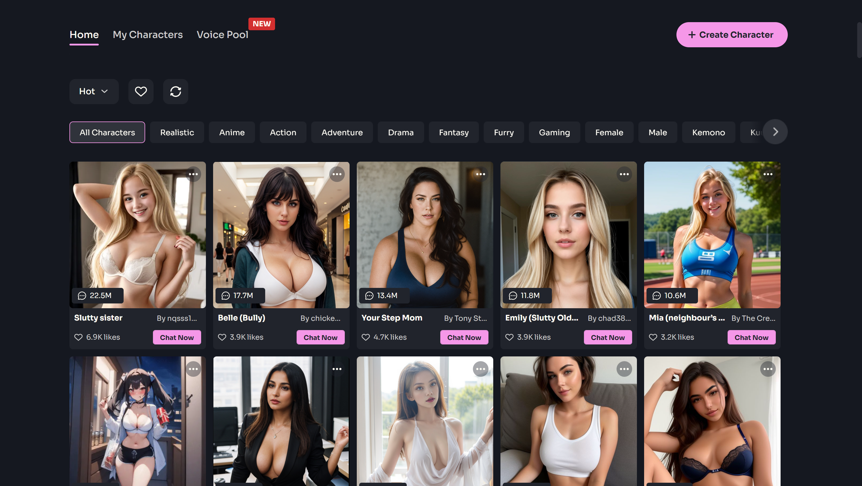 On the homepage, you can pick from more than 100 AI girlfriends to interact with.
