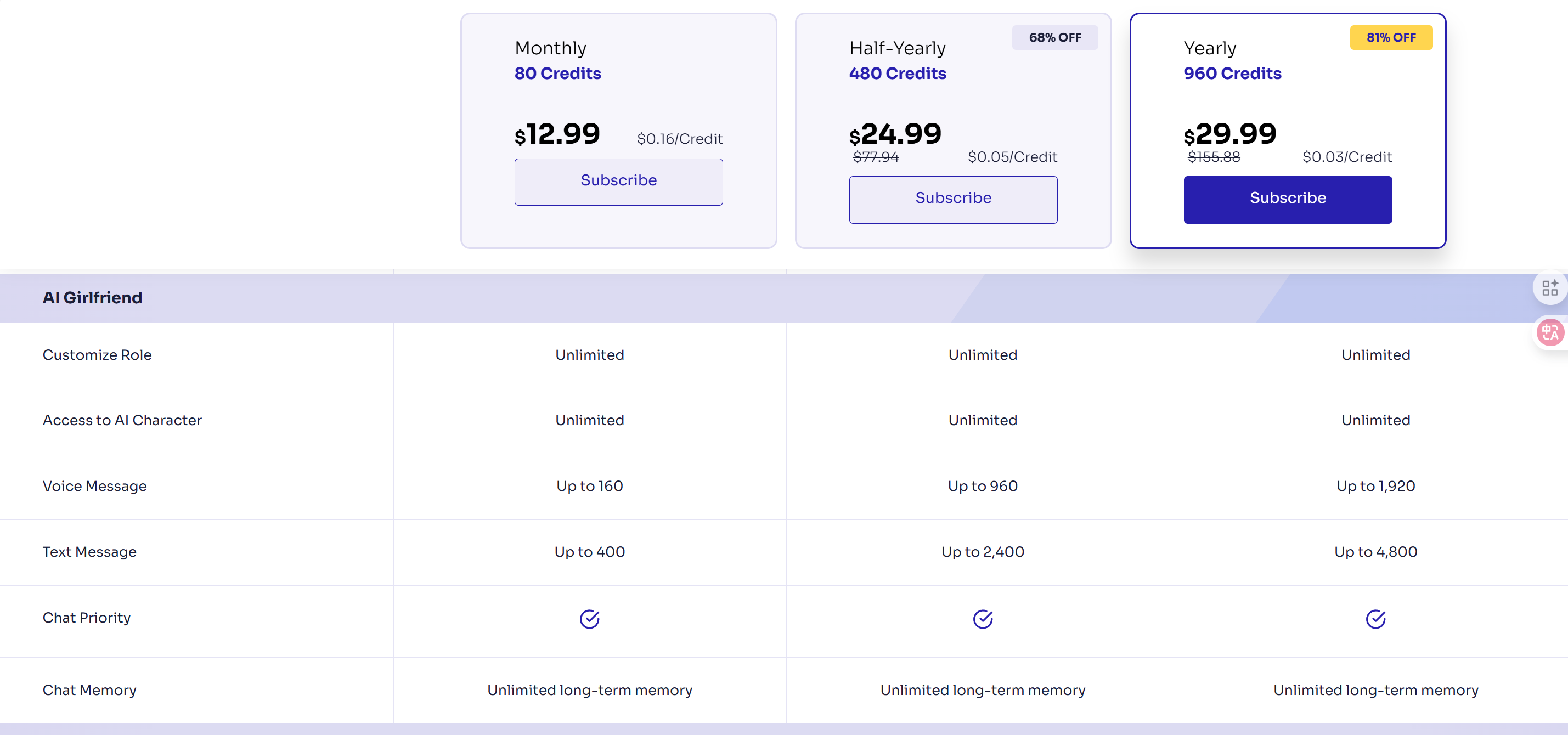 You can chat with any character without paying, and free users can access unrestricted text, voice messages, and basic roleplay. The only limitation is the number of messages you can send. Paid plans simply offer higher message limits.