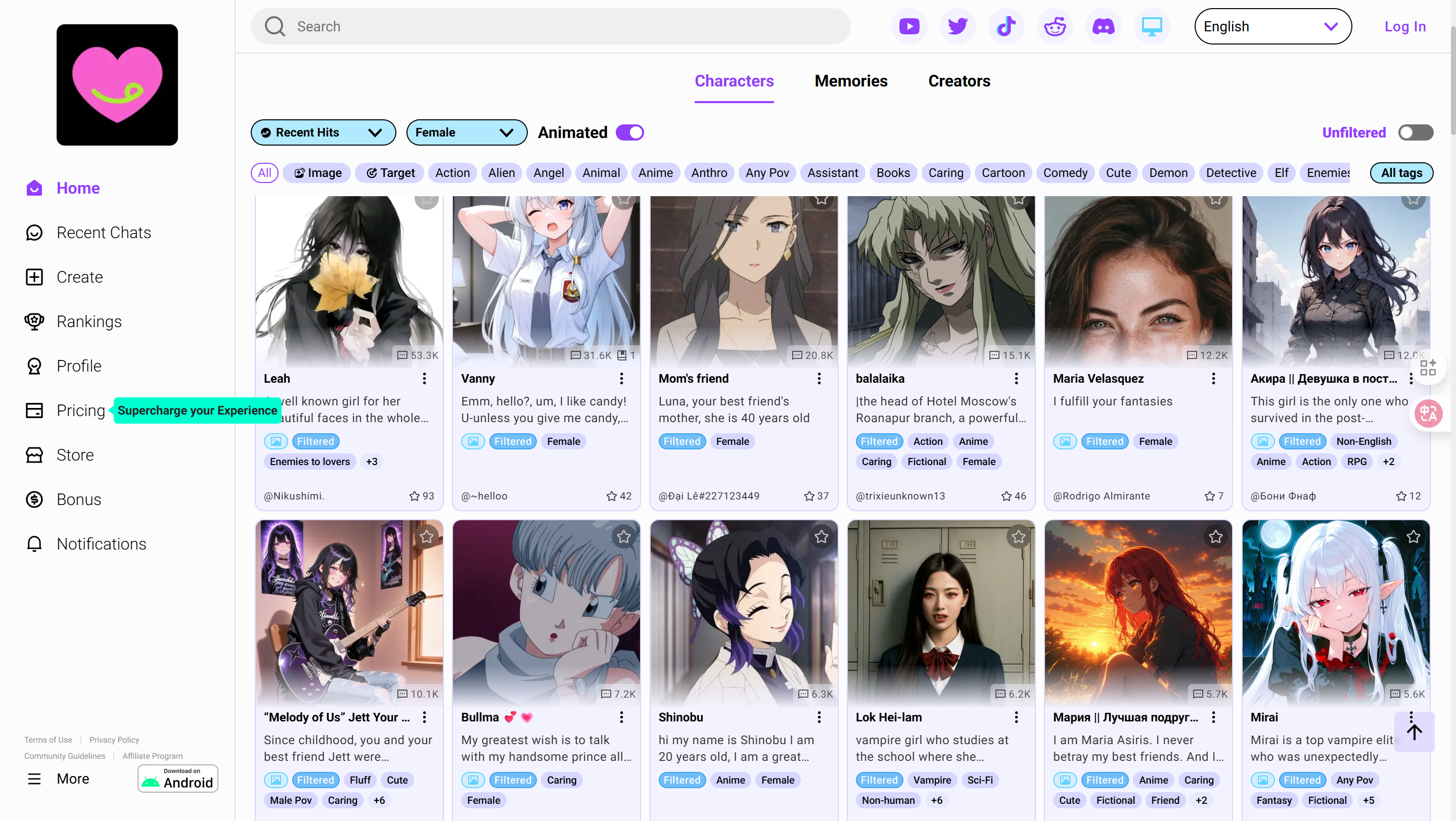 However, the tags are not very accurate, and many characters feel repetitive despite having different profile images.
